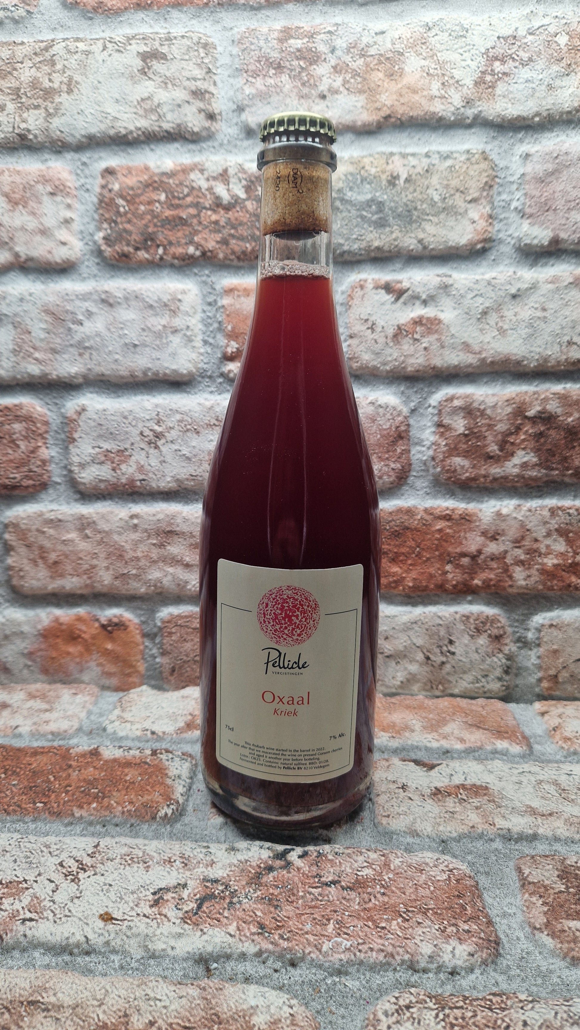 Eén van onze eerste blends was een sprankelende volle rabarberwijn. Om een of andere reden zijn de brouwers gestopt met het maken van dit soort wijn. We hadden echter nog 2 vaten die de brouwers in 2022 hadden gemaakt. In het jaar daarna hebben de brouwers de wijn gemengd met schillen van onze geliefde Gorsem-kersen. Na 1 jaar rijping besloten de brouwers om het te bottelen en nog een jaar te laten staan. Een sprankelend fruithuisdier, zo je wilt, met naast rabarber en kers ook tonen van rozen, amandel en kaneel.